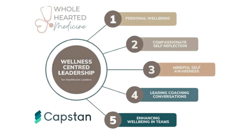 An innovative approach to leadership education, Wellness Centred Leadership retreats by Whole Hearted Medicine & Capstan Partners support healthcare leaders to develop skills in both personal and organisational wellbeing. Empowering those in healthcare leadership roles to lead through the process of cultivating their own professional & personal wellbeing, using this as a tool to connect with and guide their teams through resonance and tangible action.